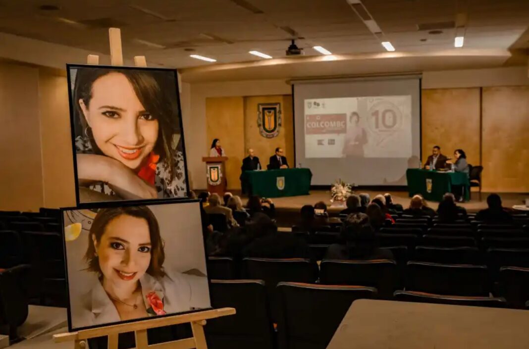Isaías Plascencia y Diana Merchant entregaron reconocimientos y placas conmemorativas a la mamá de Ana Velia, la Dra. Celia Maldonado, y a su esposo, Alberto Barajas. Cinthya Vejar, integrante del Colcombc, compartió la semblanza de Ana Velia mientras se proyectaba un video producido por el comunicólogo Iván Belmont. El maestro Roberto Reyes, director de la Facultad de Ciencias Químicas e Ingeniería, también reconoció la trayectoria docente de Guzmán y su impacto positivo en los estudiantes.